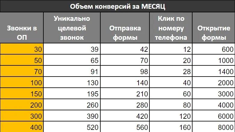 Может показаться, что в данных ошибка. Почему количество конверсий отправок формы и уникально целевых звонков +- равно? Если посчитать по среднему CR, то: