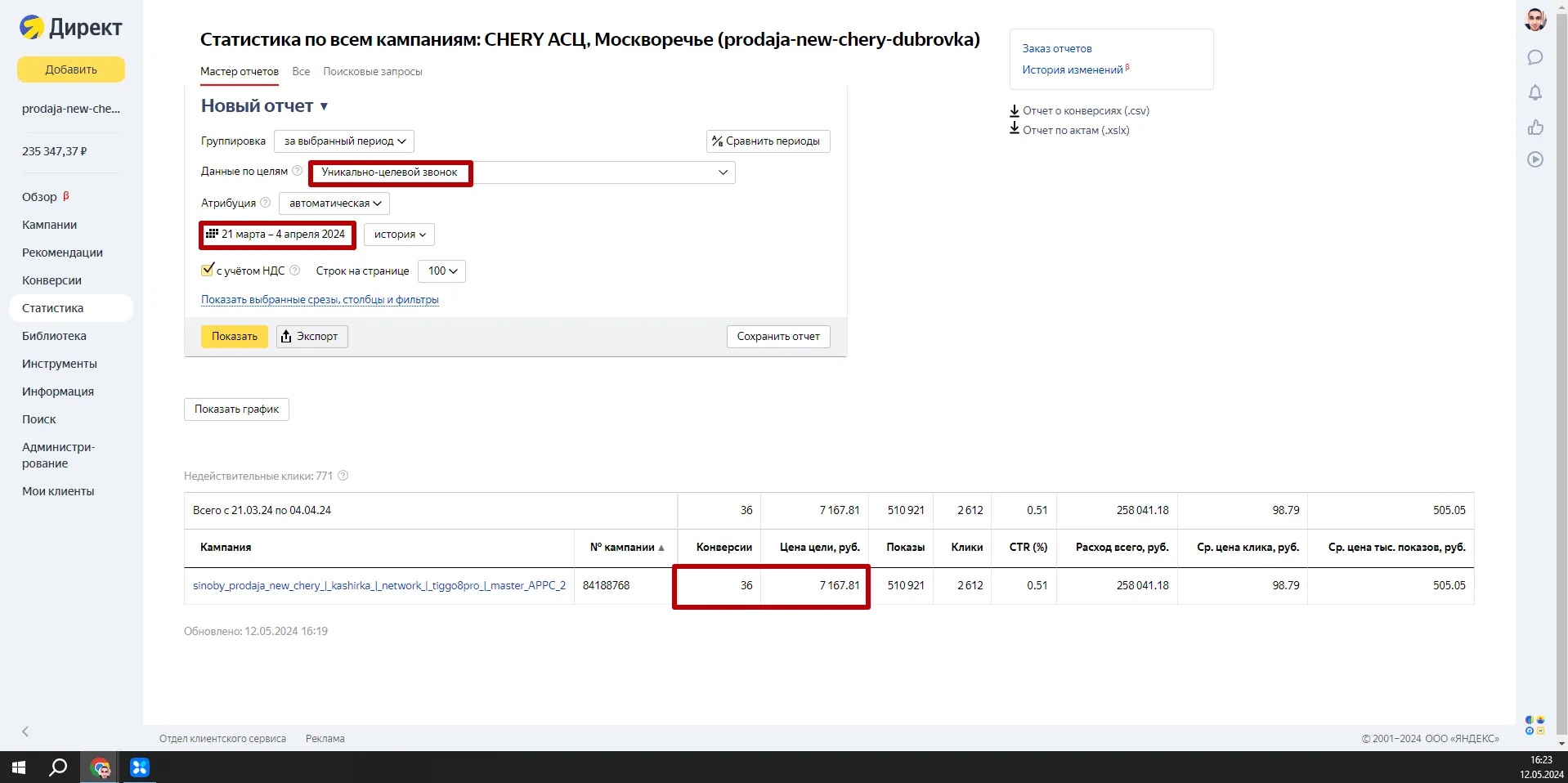 Может показаться, что это трафик ради трафика, и, по итогу, никто не приедет покупать автомобиль. Но нет, из этого трафика есть продажы. По анализу контрактовки, из-за более низкой цены звонка из этих кампаний, цена за продажу автомобиля была не выше, чем в основном регионе.