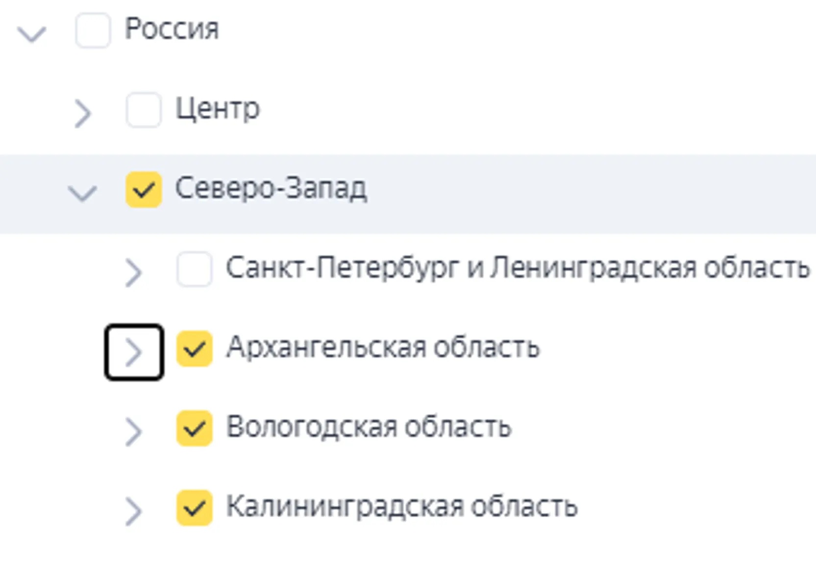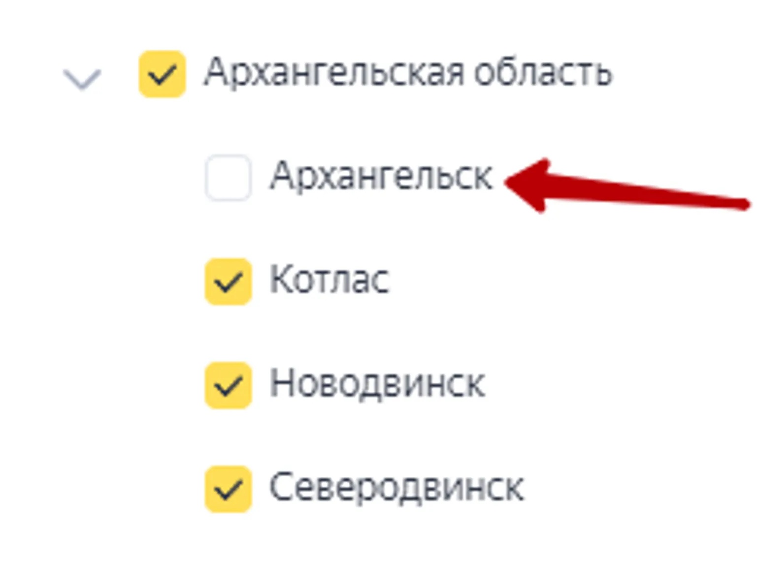 Рекомендую убрать основной город, центр этого округа. Это увеличит шансы не быть пойманным, т.к. дилерские центры находятся в основных городах округа. Соответственно менеджеры дилерских центров, на чей трафик мы залезли, не смогут нас увидеть, когда будут проверять РСЯ трафик в своем регионе. Большую часть трафика мы тихонько сможем долгое время выкупать и не попадаться.