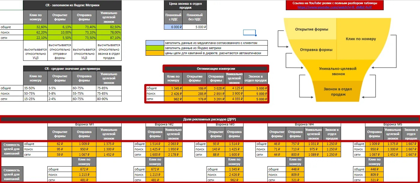 В агентстве есть 2 готовые таблица для расчета стоимости конверсии для кампаний: